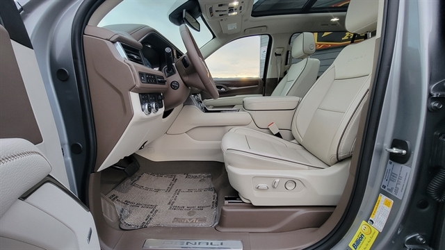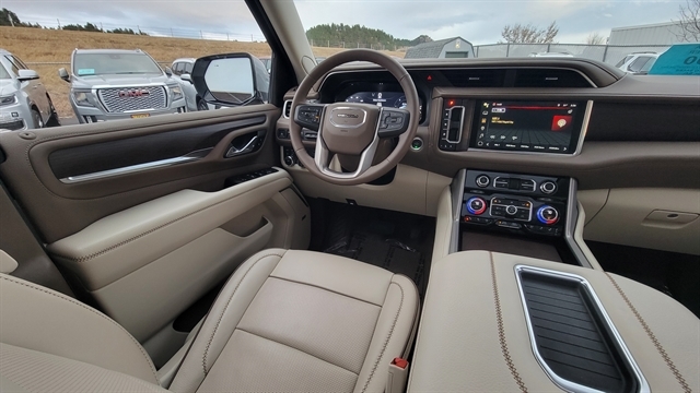 CHECK OUT THIS 2024 GMC YUKON XL DENALI EDITION! POWERED BY THE 6.2L V8 GAS ENGINE PAIRED WITH A 10-SPEED AUTOMATIC TRANSMISSION AND 4-WHEEL DRIVE, THIS FULL-SIZE SUV DELIVERS BOTH POWER AND LUXURY. EQUIPPED WITH POWER LOCKS, POWER WINDOWS, AND POWER-FOLDING SIDEVIEW MIRRORS. THE PREMIUM LEATHER INTERIOR FEATURES POWER-ADJUSTABLE SEATS WITH MEMORY POSITIONS, HEATED AND COOLED FRONT SEATS, A HEATED STEERING WHEEL, AND HEATED SECOND-ROW CAPTAIN’S CHAIRS. THIRD-ROW SEATING PROVIDES ROOM FOR UP TO 7 PASSENGERS. TECH AND ENTERTAINMENT INCLUDE SATELLITE RADIO, BLUETOOTH CONNECTIVITY, APPLE CARPLAY, ANDROID AUTO, AND A 14-SPEAKER BOSE PREMIUM SOUND SYSTEM. ADDITIONAL FEATURES INCLUDE A HEAD-UP DISPLAY, WIRELESS CHARGING, AND A DUAL-PANE PANORAMIC SUNROOF. ADVANCED SAFETY AND DRIVER ASSIST FEATURES INCLUDE ADAPTIVE CRUISE CONTROL WITH FORWARD COLLISION MITIGATION, LANE KEEP ASSIST, AUTOMATIC START/STOP TECHNOLOGY, BLIND SPOT MONITORING, FRONT AND REAR CLIMATE CONTROL, AND A 360-DEGREE BACKUP CAMERA WITH REVERSE SENSORS. THIS YUKON XL DENALI ALSO COMES EQUIPPED WITH PREMIUM ALLOY WHEELS, FIXED RUNNING BOARDS, A RECEIVER HITCH WITH TOW PACKAGE AND TRAILER BRAKE CONTROLLER, ONSTAR SERVICES, BUILT-IN NAVIGATION, REMOTE START, AND MUCH MORE. CALL (605) 642-1900 TODAY OR STOP IN FOR A TEST DRIVE!